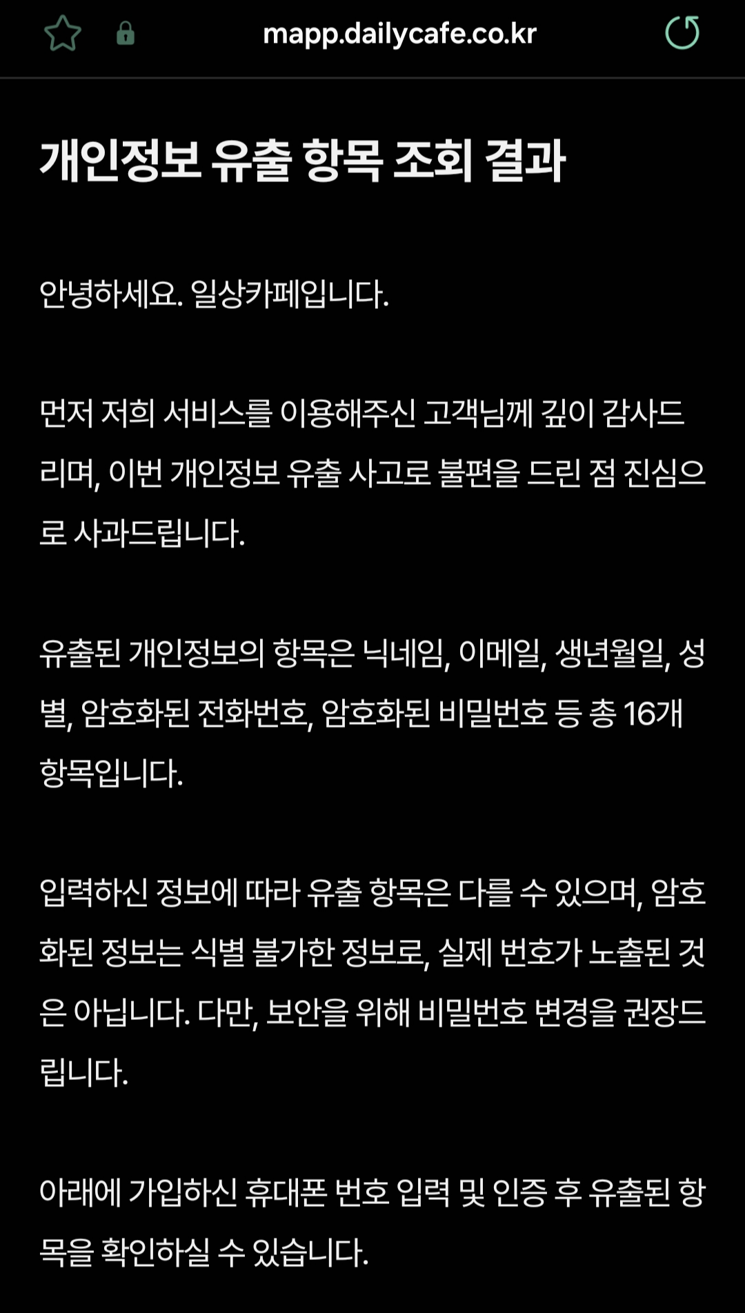 - 2025년 6월 6일(금) : 공식 사과문 발표 및 피해 고객 대상 안내