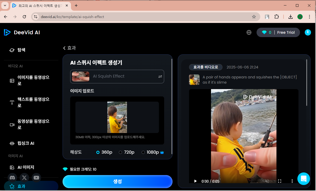 이미지 파일 첨부 시 Deevid에서 제공하는 다양한 효과를 적용할수 있어요