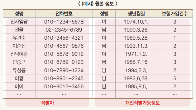 ※ 출처 : 금융분야 가명ㆍ익명처리 안내서_202201(발행처 : 금융위원회, 금융감독원)