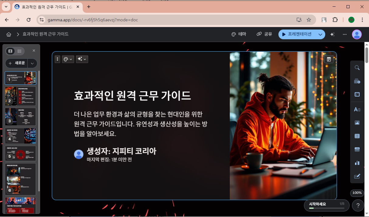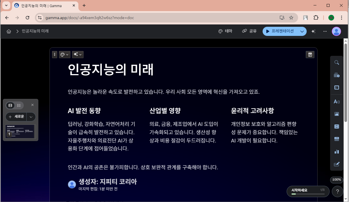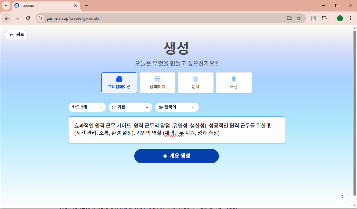 감마와 같은 AI 기반 프레젠테이션 도구는 기획 및 발표 준비 과정에서 여러모로 큰 도움을 줍니다.